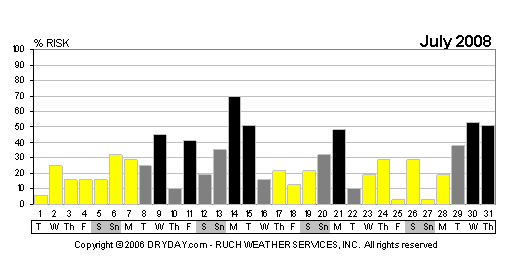Expect most of the rain to fall on RISKY days (black bars), but don't expect rain on all RISKY days.